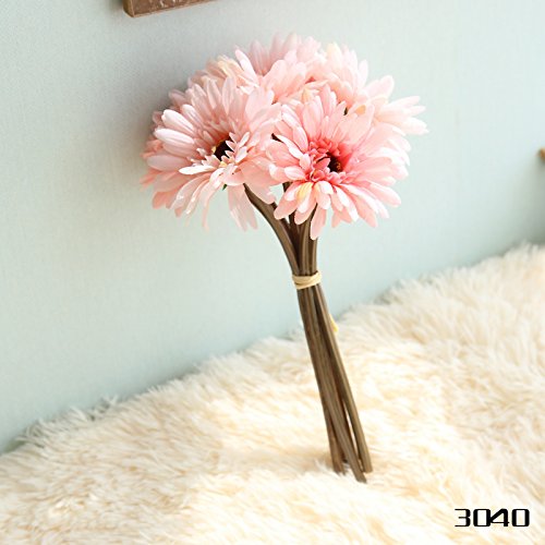 Anmas Home 2 Bunch Silk Artificial Gerber Daisy Bouquet With SteamFor Home Wedding DIY Decoration (Bouquet 1-7 Heads, Pink)