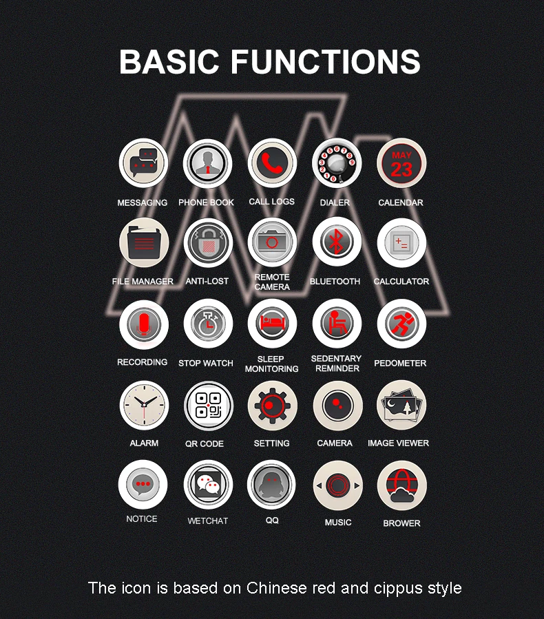 Function:Passometer,Sleep Tracker,Dial Call,Alarm Clock,Calculators,Remote Control,Fitness Tracker,Answer Call,Message Reminder,Week,Call Reminder