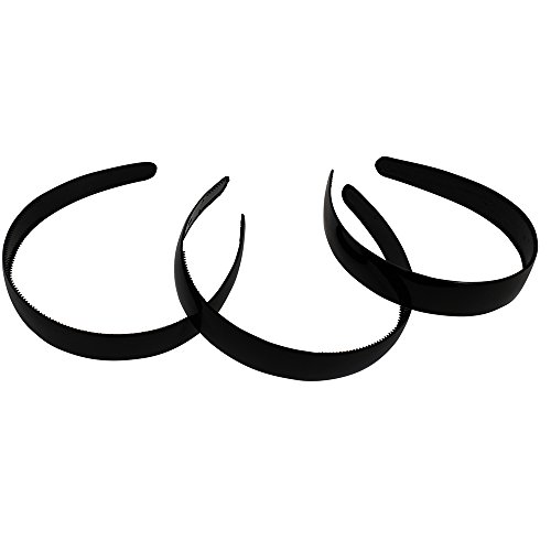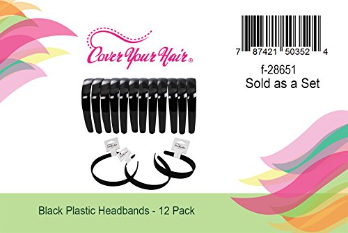 Black Plastic Hard Headbands with Inner Teeth -12 Hair Bands by CoverYourHair