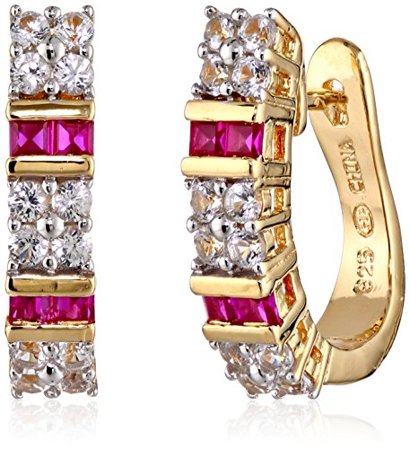 Gold over Sterling silver earrings featuring created rubies and created white sapphires at front
