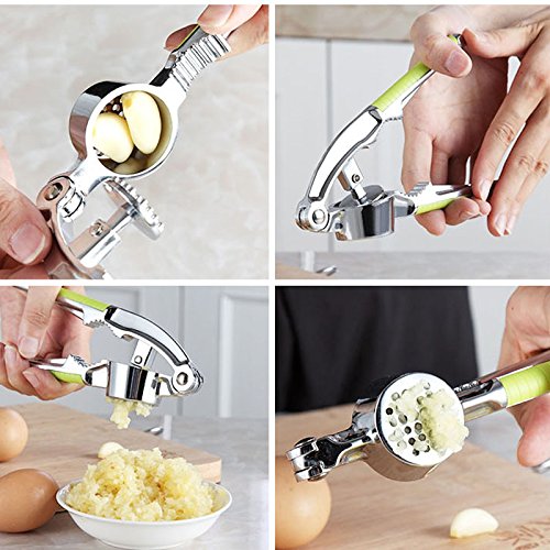 - GARLIC PRESSER MATERIAL - This Garlic Presser is made of Stainless Steel,durable and easy to use.The grip is made of silicone,won't slip out of your hand.