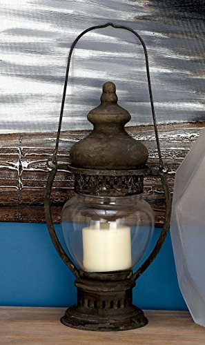 -. Title : Deco 79 Metal Glass Lantern, 18 by 10-Inch