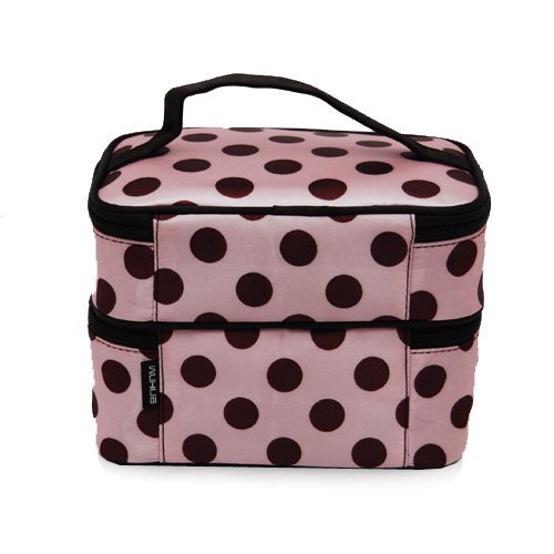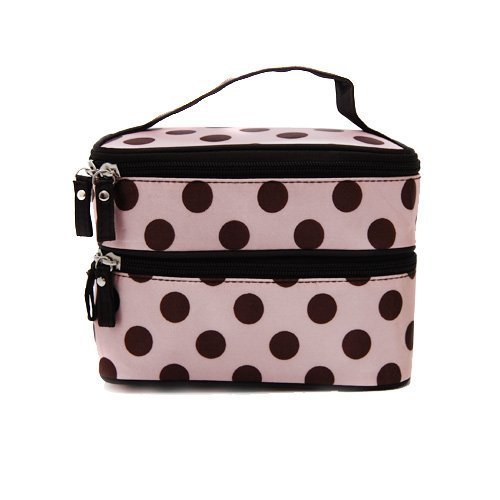 ALINCAS Makeup Bag Double Layer Cosmetic Bag Pink With Brown Polka Dots