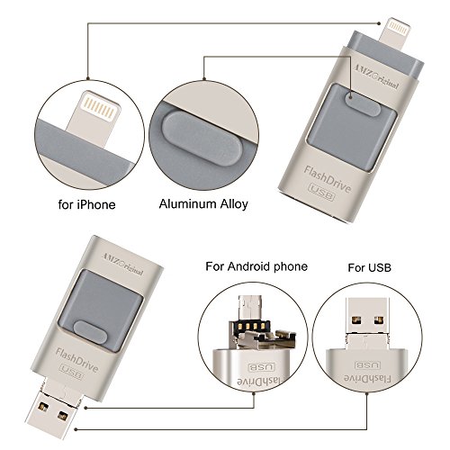 -. Title : USB Flash Drives for iPhone 32GB Pen-Drive Memory Storage, AMZ Original Jump Drive Lightning Memory Stick External Storage, Memory Expansion for Apple IOS Computers (Grey)