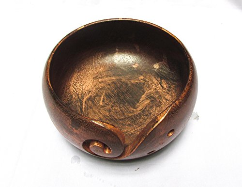 Premium Solid Dark Hard Wood Crafted Wooden Portable Antique Copper Yarn Bowl | Knitting | Crochet Holder | Hind Handicrafts ( 6 x 6 x 3 inch )