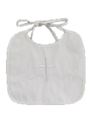-. Title : Lito White Embroidered Cotton Christening Baptism Boy's Bib