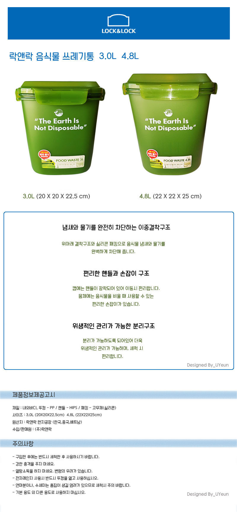 Lock & Lock Food Garbage Can 3L DB501