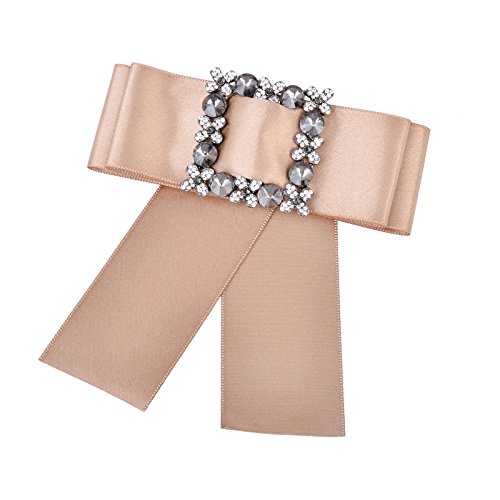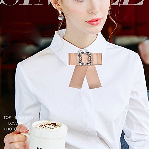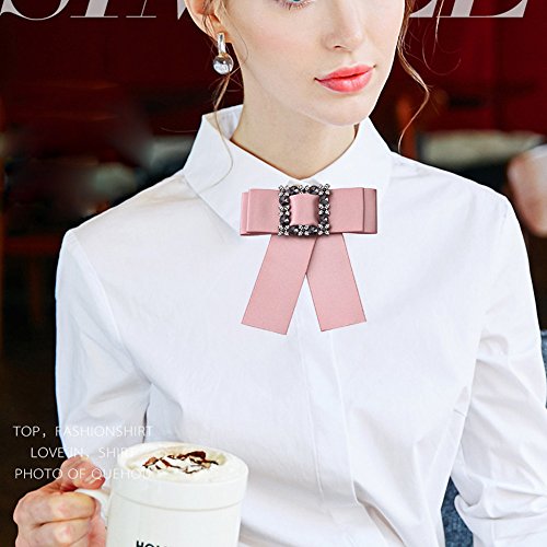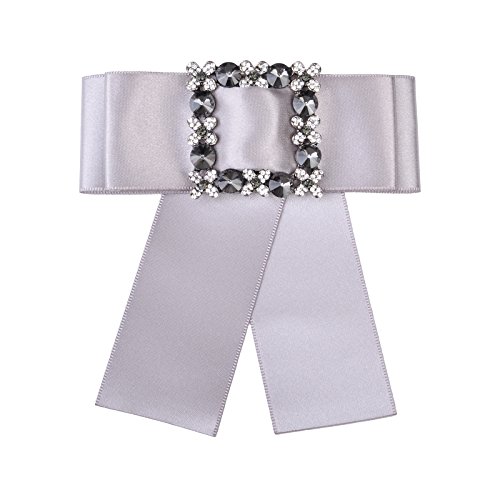 -. Title : OBONNIE Women's Crystal Black Satin Ribbon Bow Tie Brooch Pin Shirt Tie Jabot Collar Neck Tie Cravat