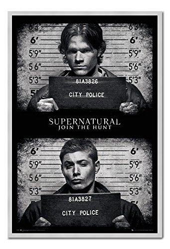 -. Title : Supernatural Mug Shots Poster Magnetic Notice Board Silver Framed - 96.5 x 66 cms (Approx 38 x 26 inches)