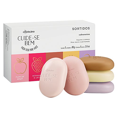 O Cuide-se Bem Sabonetes em Barra Quinteto Sortido traz cinco sabonetes em barra com fragrâncias variadas em uma linda caixinha.Todos os sabonetes contêm extratos naturais e produzem espuma cremosa que limpa sem ressecar a pele. São cinco fragrâncias deliciosas que vão te conquistar: flor de maçã, rosa e algodão, leite e mel, morango e leite e caramelito,Feature