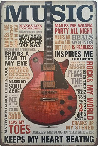 Music Inspires Me Guitar Musician Tin Sign 8"x12" inches Vintage Rustic Distressed Home Decor