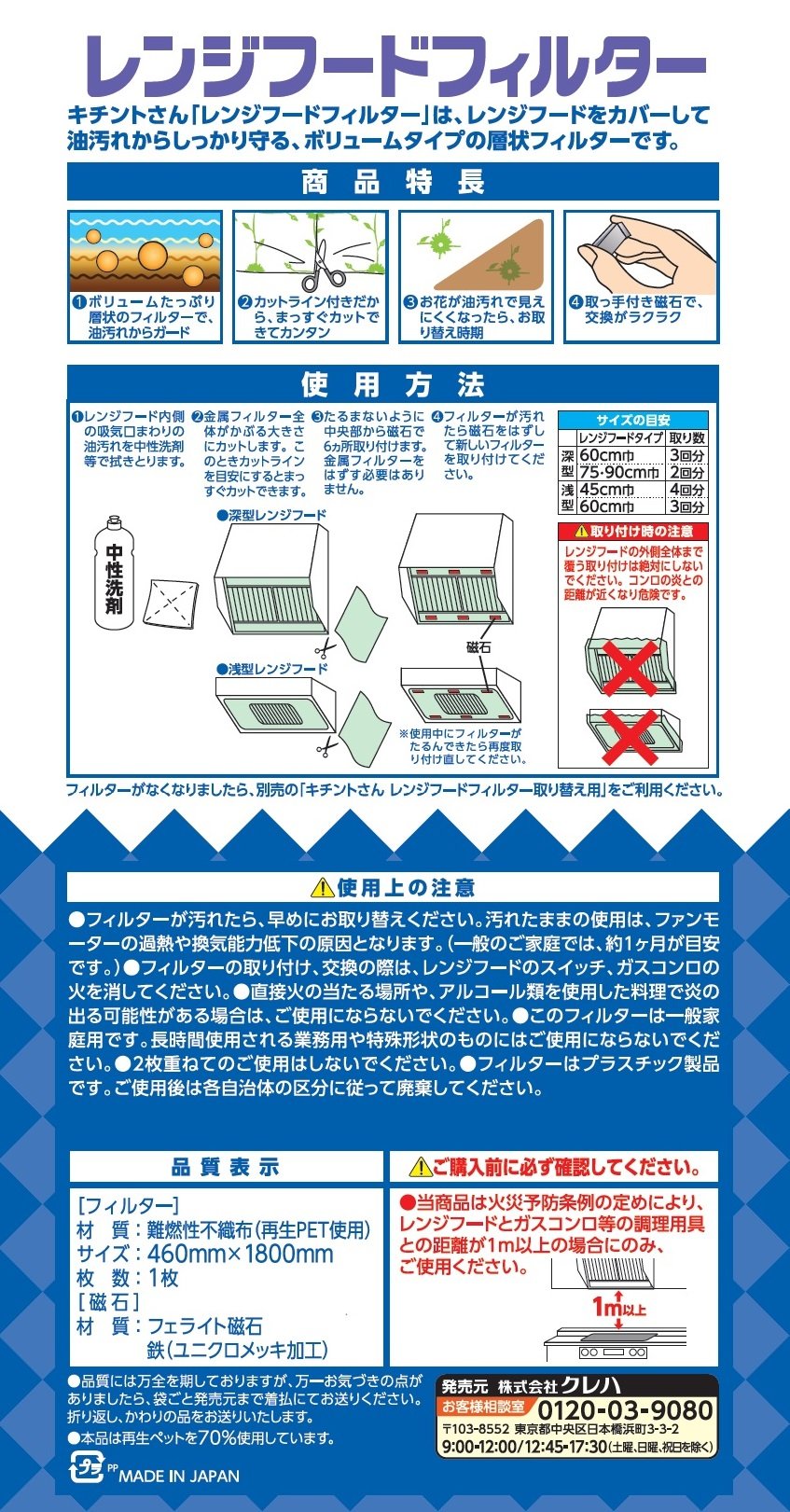 "Range hood filter 46 cm * 100 cm 1 piece" is a range hood filter that firmly protects the range hood from greasy dirt.