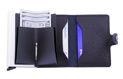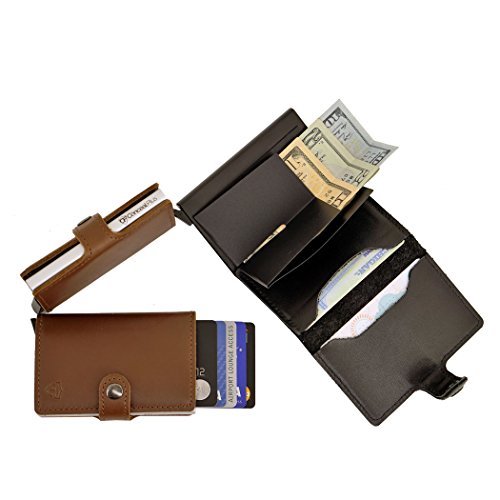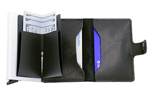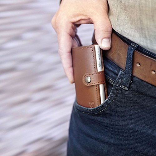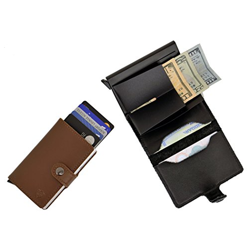 -. Feature : PERSONAL SECURITY - Best slim wallet protection for your credit cards and identity from RFID scanning thieves and electronics pick pockets. / RFID PROTECTION FOR TO 4-6 CARDS - This card case may be small but it holds 6 flat cards, or 4 embossed cards in the card protector, plus another 2-4 cards in the interior. / SOFT SUPPLE LEATHER COVER - Genuine 100% soft supple leather minimalist slim wallet design fits great in front or back pocket and won't bend. Button closure keeps contents in place. / ONE CLICK FUNCTIONALITY - With the one click action and credit cards slide out but are held securely in the sleeve. Best RDIF wallet womens or mens. / FOR WOMEN TOO - Keep your credit cards and ID organized and protected in your purse, clutch, or bag. No more digging through your wallet to find the card you were looking for. SATISFACTION GUARANTEED!!