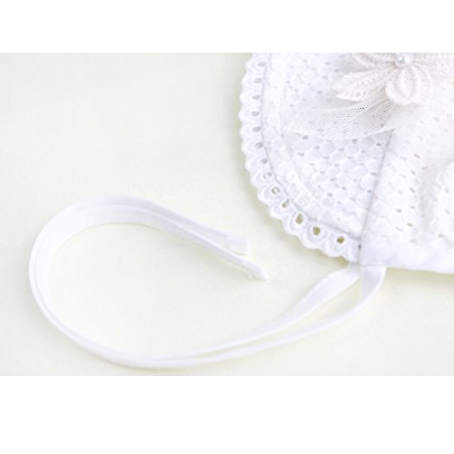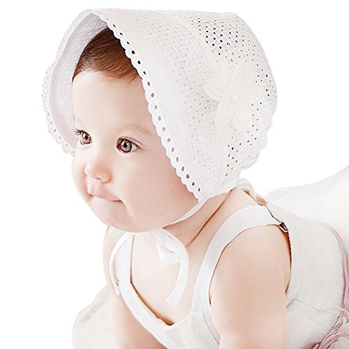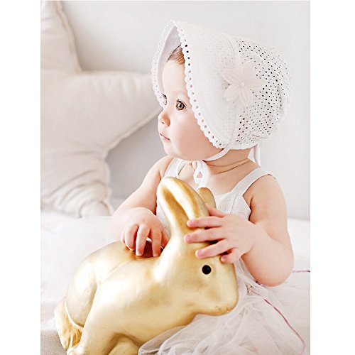 IMLECK Lace Fashion Pearl Hollowed Flower Baby Bonnet Handmade in White or Pink