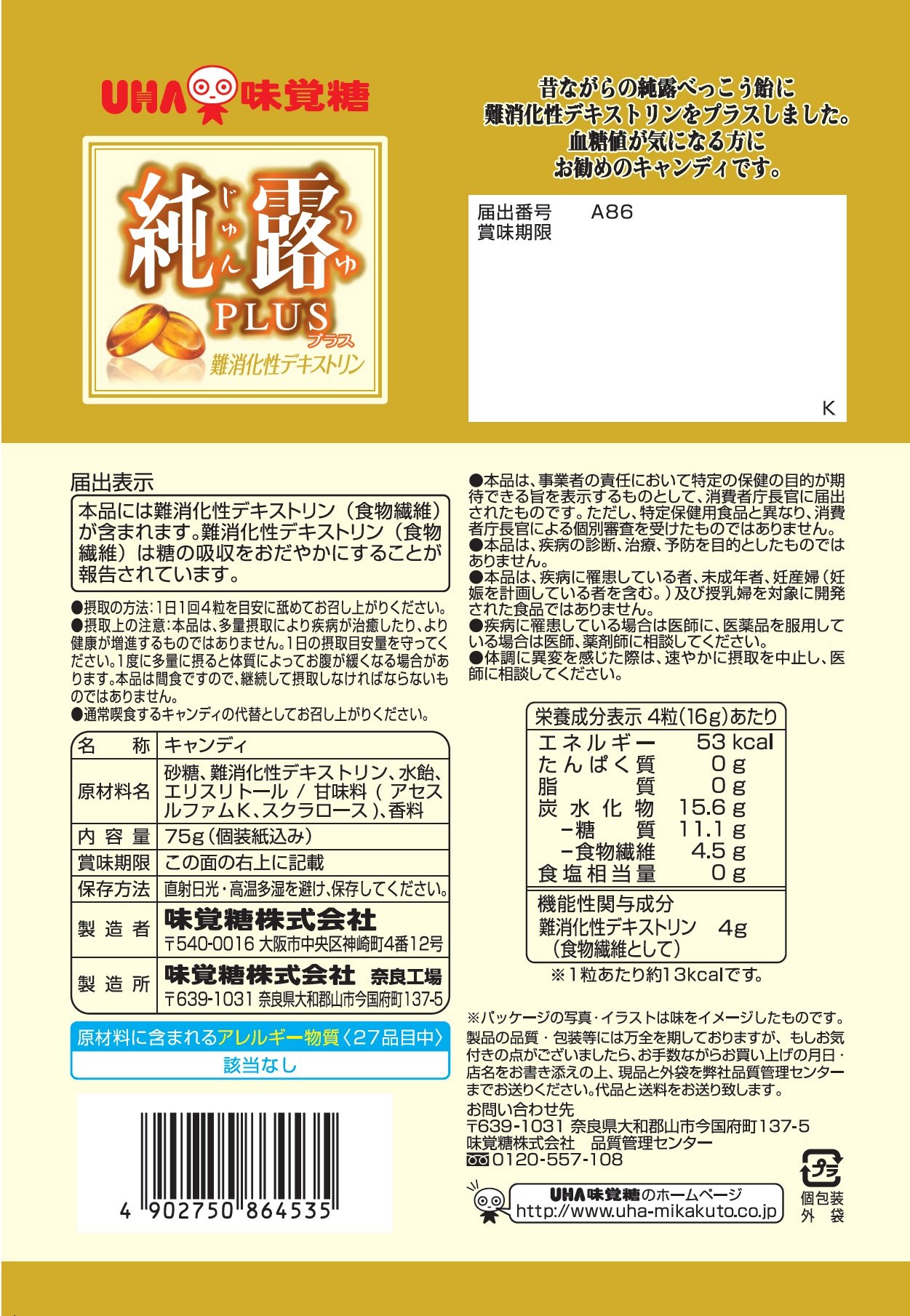 Pure Rus with indigestible dextrin which is supposed to calm absorption of sugar and suppress rise in blood sugar level.