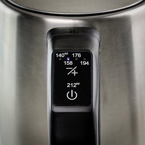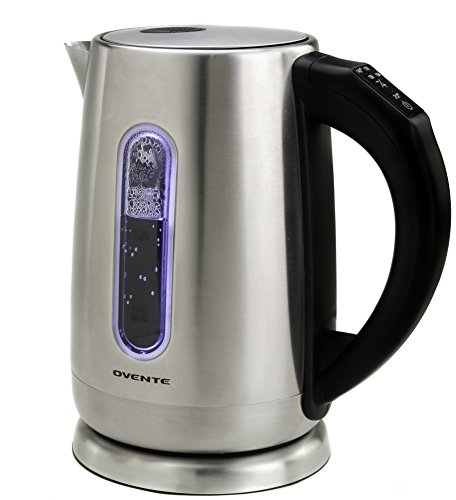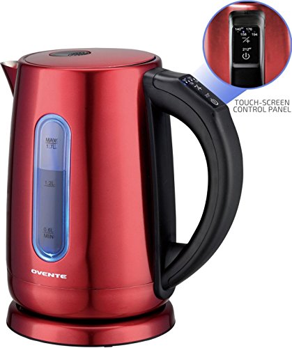 The Ovente KS58S Electric Kettle's stylish stainless steel frame flatters any kitchen countertop and comes with a 1 YEAR WARRANTY, so rest assured, Ovente has your back.With a 1.7L capacity and 1100W of power, it quickly boils water for coffee, tea, instant macaroni and oatmeal, etc. It is proven to be 50% more efficient than stovetop kettles in reducing your daily electricity use, and has a concealed water heating element to prevent mineral build-up, a flip-back lid for convenient filling, and a removable/washable spout filter. It's also easy to clean; simply mix 3 tbsp of vinegar or lemon with water, and leave 5-8 hours after boiling or overnight. For safety purposes, this kettle is equipped with automatic shut-off, boil-dry protection, secure locking lid, power on indicator light, cool touch button and a comfortable stay-cool handle. It also comes equipped with touch-screen controls instead of buttons, and a 30-in cord that wraps neatly into the base for easy storage.