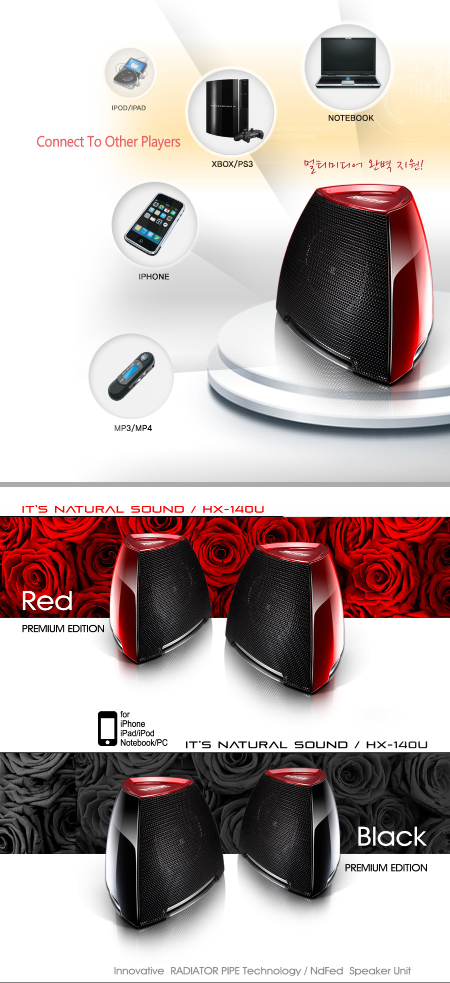 Royche Premium HX-140U Black USB Power Stereo Speaker Desktop Laptop smartphone