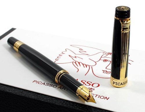 -. Title : Picasso Black Lacquer Barrel Special Nib 22KGP Gold Dream Series Fountain Pen with Push in Style Converter