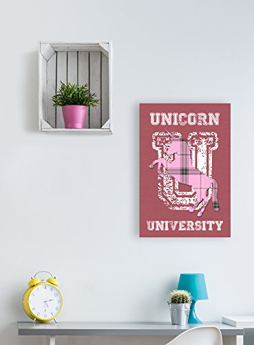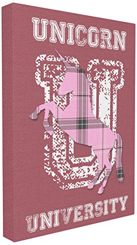 The Kids Room by Stupell Unicorn University Pink Plaid Oversized Stretched Canvas Wall Art, 24 x 30