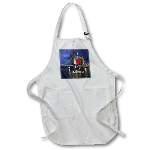3dRose apr_56910_1 I Love London-Full Length Apron with Pockets, 22 by 30-Inch, White