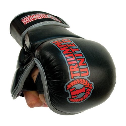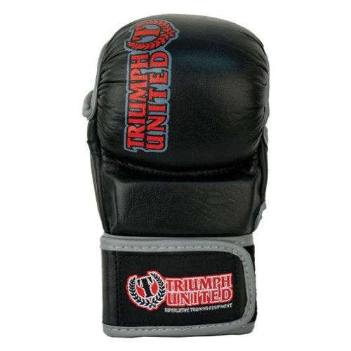 -. Binding : Sports -. Brand : Triumph United -. Color : Black -. Feature : Constructed from soft, durable leather for added comfort / Pre-curved to reduce break-in period / Reinforced stitching at the finger and thumb loops for durability / Lined with P.R.Inted, quick drying, anti-slip fabric / Hook and loop closure for a secure fit -. Label : Pro-Motion Distributing - Direct -. Manufacturer : Pro-Motion Distributing - Direct -. Model : TUN23001BLKXXL-Parent -. PackageQuantity : 1 -. ProductGroup : Sports -. ProductTypeName : SPORTING_GOODS -. Publisher : Pro-Motion Distributing - Direct -. Studio : Pro-Motion Distributing - Direct -. Title : Triumph United MMA Training Glove