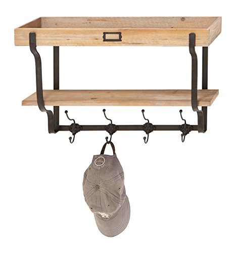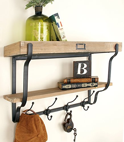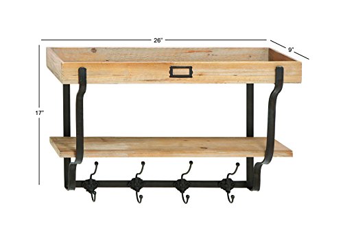 Deco 79 Functional Multi Level Wall Shelf and Hooks