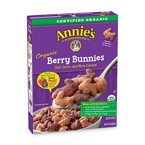 -. Feature : Made with 15g of whole grains, organic oats, corn and rice flour; A non-GMO cereal that's tasty AND wholesome / Made with goodness; No artificial flavors, synthetic colors, preservatives, or high-fructose corn syrup / Start the day with a whole grain oat cereal that's perfectly balanced and flavored with real fruit and other natural flavors / Delicious, crunchy, berry bunnies that are a sweet spot for cereal lovers big and small / 10.8 oz cereal box; Stock up your pantry with an easy and delicious breakfast option for everyone