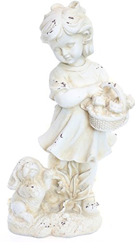 Alpine Corporation QFC128CR Girl with Dog & Basket of Puppies Garden Statuary