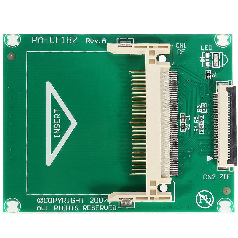 This adapter is used for connecting a Compact Flash memory card to a 1.8" ZIF host interface aimed at being able to use of a Compact Flash card as a ZIF hard drive through a ZIF cable into the ZIF port of any processor board, the small form factor of this adapter can be easily mounted inside any system.