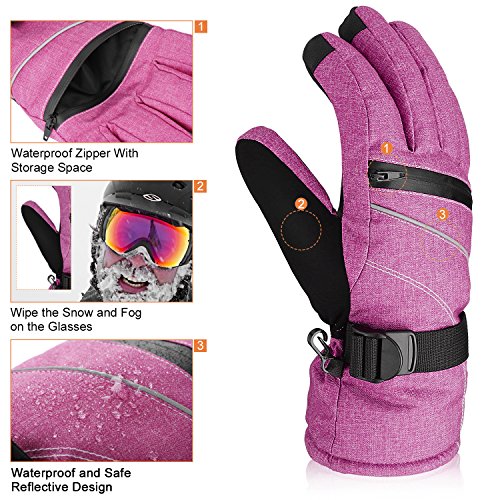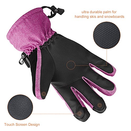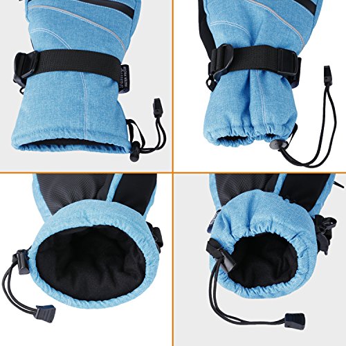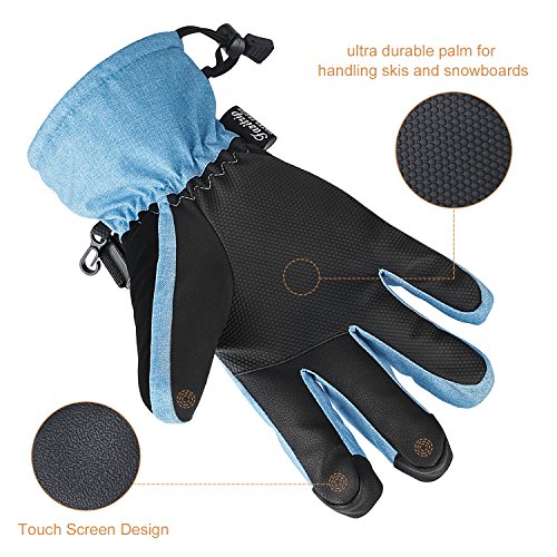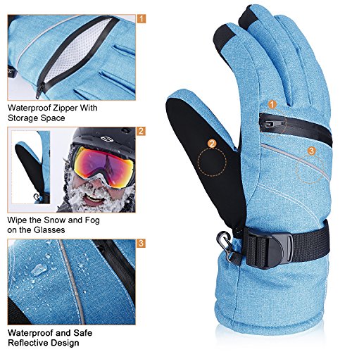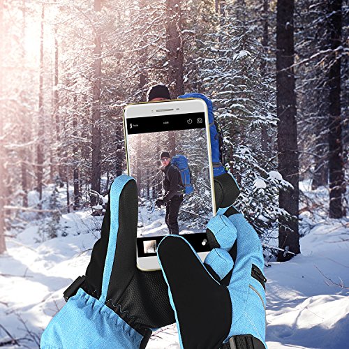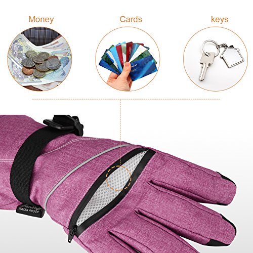 Product Description Materials: Polyester and Olefin; Waterproof Exterior; 3M Thinsulate Insert; PU Palm Function: Breathable Windproof waterproof Protection and Sensitive Touchsreen Function; Anti-slip leather palm;Comfortable Lining;Zipper Pocket and Custom Fit. Sizing: S/M :for hands 7.3" max from palm to longest finger, 11.5" total length of glove M/L:for hands 7.75" max from palm to longest finger, 12" total length of glove L/XL:for hands 8.25" max from palm to longest finger, 12.5" total length of glove Package Includes: 1 x Pair of Snow Gloves 0