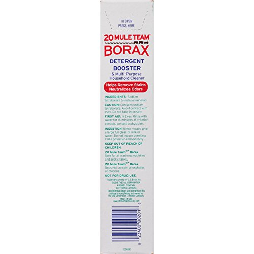 -. Feature : All-natural laundry booster and multi-purpose household cleaner / Nature's original laundry and cleaning solution / Removes stains and neutralizes odors / 20 Mule Team Borax laundry booster is safe for all machines, HE Compatible / Multi-purpose household cleaner: helps remove stains neutralizes odors softens hard water.