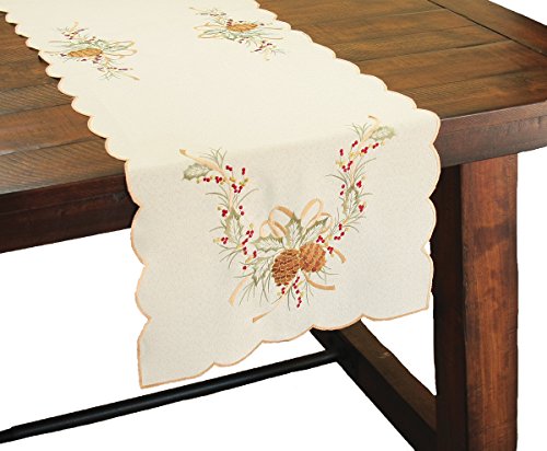 - Intricate Pine Cone,holly berry and leaves embroidered on ivory back ground