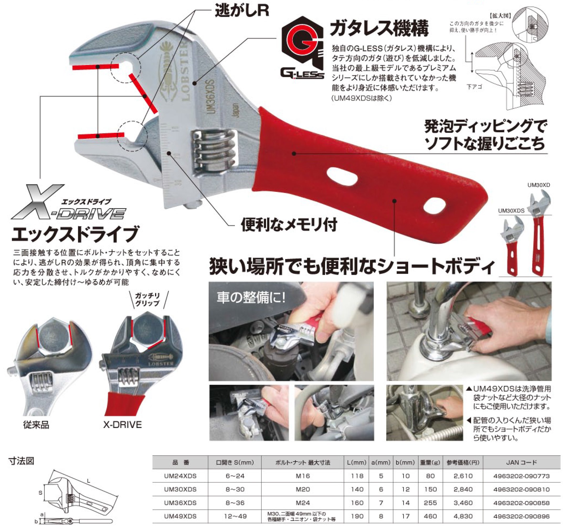 "X-DRIVE (X drive)" By setting the bolt and nut in the position to make contact with the three sides, the effect of escape R is obtained, the stress concentrating on the apex angle is dispersed, the torque is liable to be applied, the lick is hard, stable