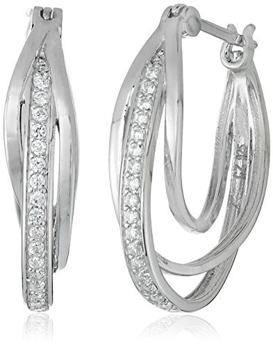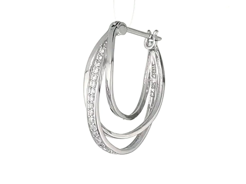 Platinum Plated Sterling Silver Cubic Zirconia Triple Hoop Earrings