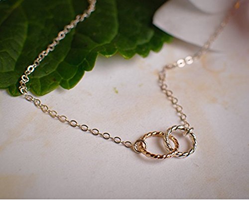 MATERIALS: Sterling silver, gold filled interlocking circles. This necklace will not turn your skin green or red or itchy :) this is the good quality piece that you can feel proud to give as a gift. The chain will NOT BREAK. Gold Filled is a thick layer of gold bonded onto brass. It does not rub off or peal off. It's the best gold metal option on the market short of buying solid gold. All the metals we use are lead free, nickel free and hypoallergenic.