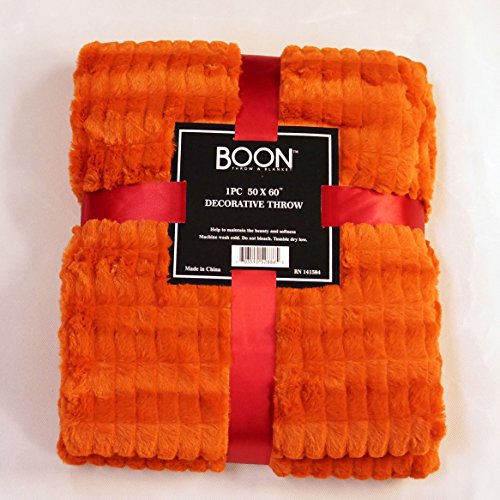 BOON Garret Faux Fur Throw Blanket, 50" x 60", Burnt Orange