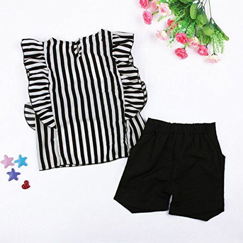 -. Binding : Apparel -. Brand : maifeng -. Color : White+Black -. Department : baby-girls -. Feature : 100% brand new and high quality / Striped top with pleated cuff and loose fit / Individually tailored shorts in black color / Perfect match! Turn your baby into a real fashion icon instantly / Recommend for 2~7 year baby, detail in picture -. ProductGroup : Apparel -. ProductTypeName : SHIRT -. Title : 2pcs Toddler Baby Girls Kids Dress T-shirt Tops+Pants Summer Clothes Outfits Set