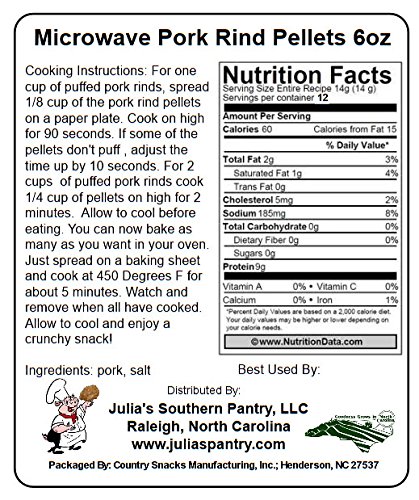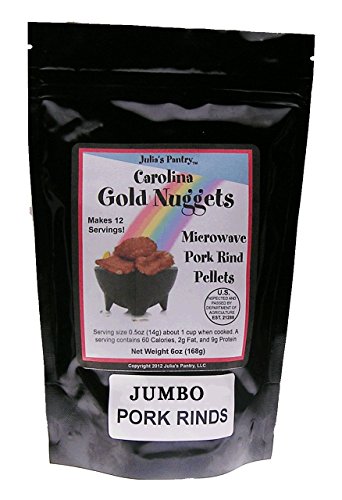 -. Feature : Microwave or Bake these amazing large pork rinds / JUMBO Style or also known as Chicharrones / 70% Less Fat than bagged fried pork rinds / Zero Carbohydrates / No preservatives or MSG