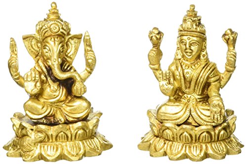 Auspicious Lakshmi Ganesh Hindu Religious Figurine Brass Idols