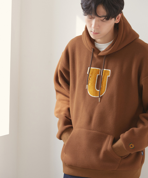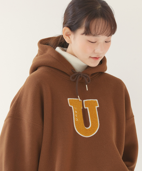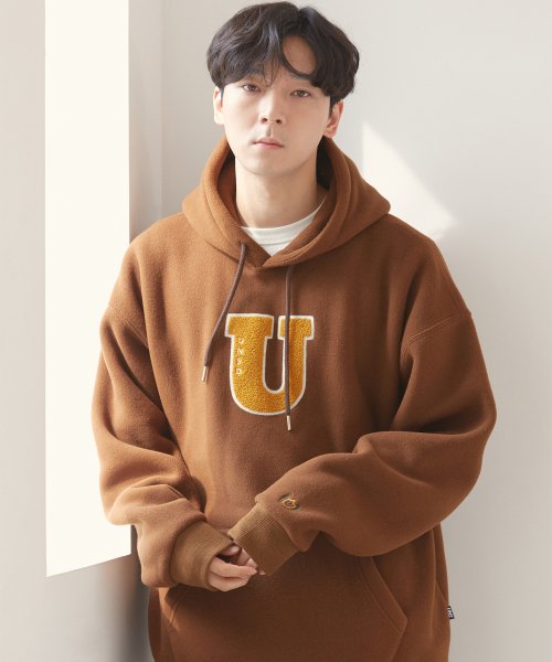 유니스디자인(UNIIS DESIGN) U 로고 프리스 후디_브라운