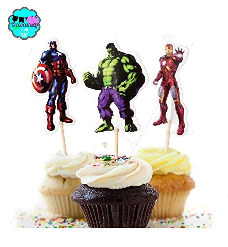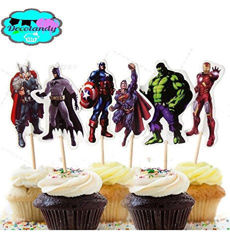 Decolandy 48 piece Avengers Cupcake toppers with picks, avengers party decoration