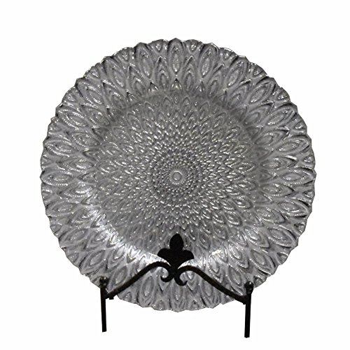 Benzara Ravishing Glass Charger with Engraved Pattern, Silver Plates