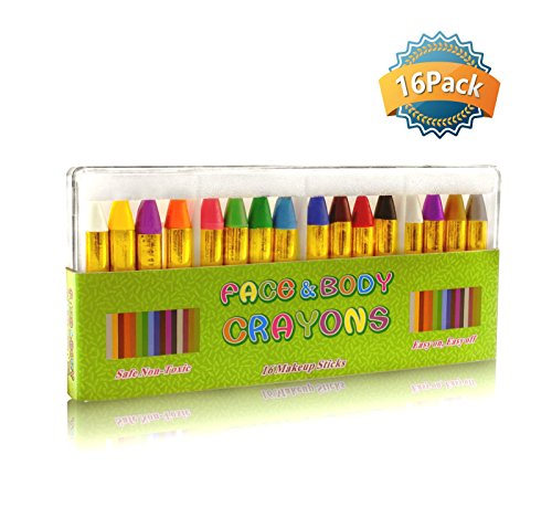 This 16 color non-toxic safety face and body makeup crayons are perfect for all kids and children face painting, just draw on skin.