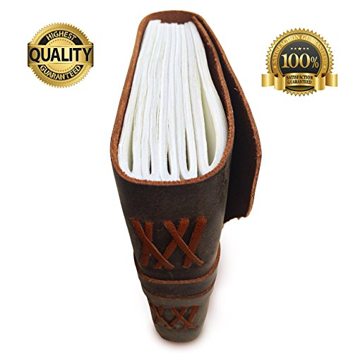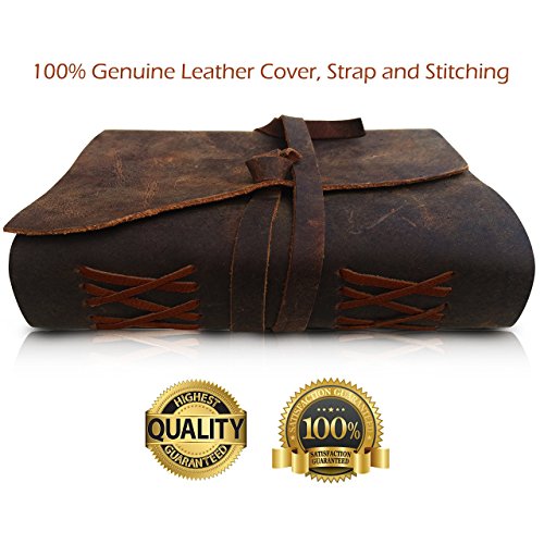 ✔ RUSTIC CHARM: Hand cut asymmetric flap and cover with hand stitched Coptic leather binding which secures the pages firmly. The leather wrap around strap effectively keeps your journal closed and also acts as a handy bookmark. This old-fashioned character leather has an amazing smell!
