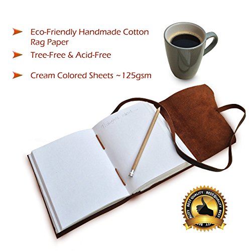 ✔ EARTH-FRIENDLY: 120 sheets/240 pages (counting both sides) of blank, off-white/cream colored paper (NON-REFILLABLE), hand-crafted with recycled cotton which is acid free & tree free - environmentally kind! NO BLEED THROUGH: Use any pen on this thick quality paper which has a natural fiber variation, weighing 125gsm