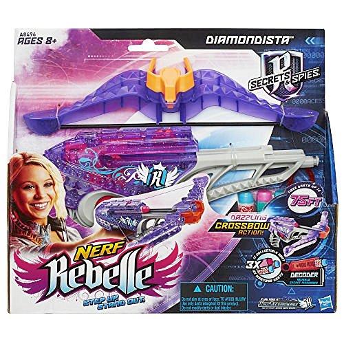 -. Feature : High quality toys for children all ages / Made using safe materials / Tested for quality and durability / Diamondista blaster has dazzling crossbow action / Blaster fires darts up to 75 feet / Includes 2 message darts and 1 collectible dart / Decoder reveals secret messages / Includes crossbow blaster, 2 Message Darts, 1 collectible dart, decoder and instructions