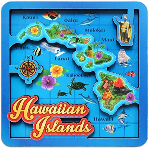Hawaiian Isles Map 2D Wood Jumbo 3.5" Magnet