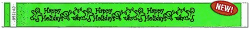 -. Feature : Great for Christmas Partys and Special Holiday Events! / One size fits all -10 in. L x ¾ in. W (254mm L x 19mm W) 500 Count / Stretch-proof, Tear-proof, Water-proof, Tamper-proof / Each pack is sequentially numbered / Security Cuts prevent transfer without damaging the wristband