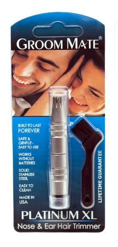 - Feature : Groom Mate branded nose & ear hair trimmers are considered to be the finest battery-free nose hair trimmers available today. PHR Systems, Ltd. has been manufacturing these fine trimmers here in the USA since 1991. / The Platinum XL nose & ear hair trimmer is made from 100% stainless steel and includes an unconditional lifetime warranty with a money-back guarantee if not satisfied. / The Platinum XL trimmer has a patented rotary blade system that is guaranteed to never dull and to never pull or yank out nostril hairs. / The Platinum XL trimmer will never cut or nick the sensitive lining of your nostril and nose hairs are gently and painlessly trimmed. / A simple, safe and very effective nose and ear hair trimmer. Give yourself the gift of good grooming today!