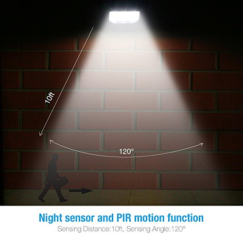 120° Detection Range: Auto light up at night when detecting the PIR motion sensor about 10 FT/120 degree sensing angle, which is bright enough to provide security for your home or business.